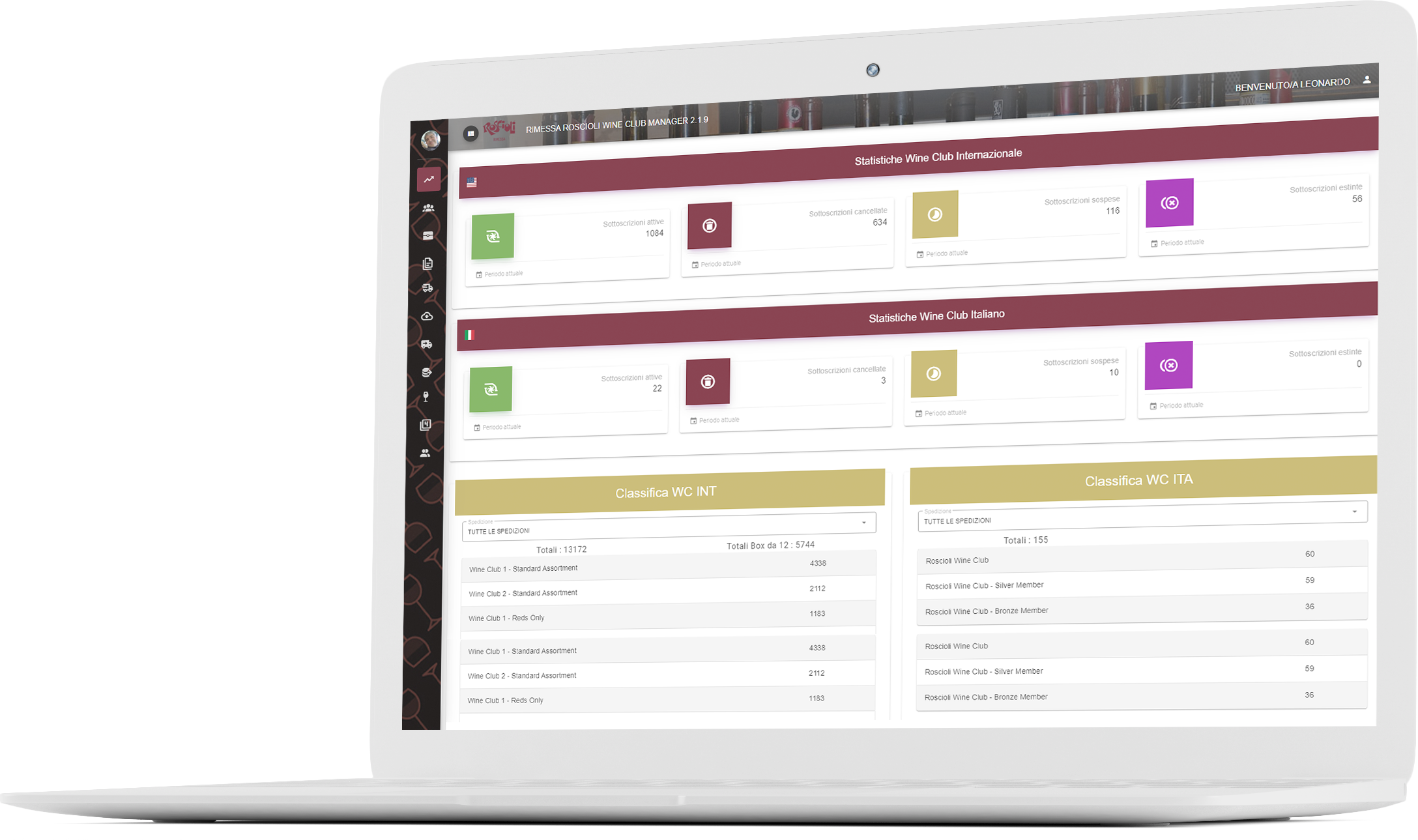 Il sistema logistico è un ERP per la Rimessa Roscioli ed il suo Wine Club. Permette l’ importazione di tutte le sottoscrizioni e gli ordini da Woocommerce di WordPress, e la gestione dei collegamenti con MBE, FedEx e UPS, cosi come tutta la gestione della fatturazione elettronica attiva mediante generazione di files XML e lettere di vettura automatici
