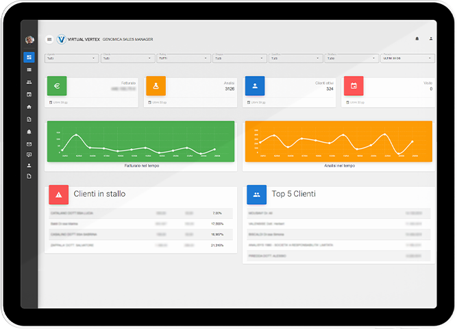 Sales Manager è un sistema CRM che importa dati già esistenti per realtà dell’ industria farmaceutica quali Genomica s.r.l. Mette a disposizione tutti gli strumenti per l’analisi finanziaria dei risultati, e gestisce gli agenti di vendita mediante raggruppamenti, associazioni cliente/agente, questionari personalizzati e reports personalizzabili.